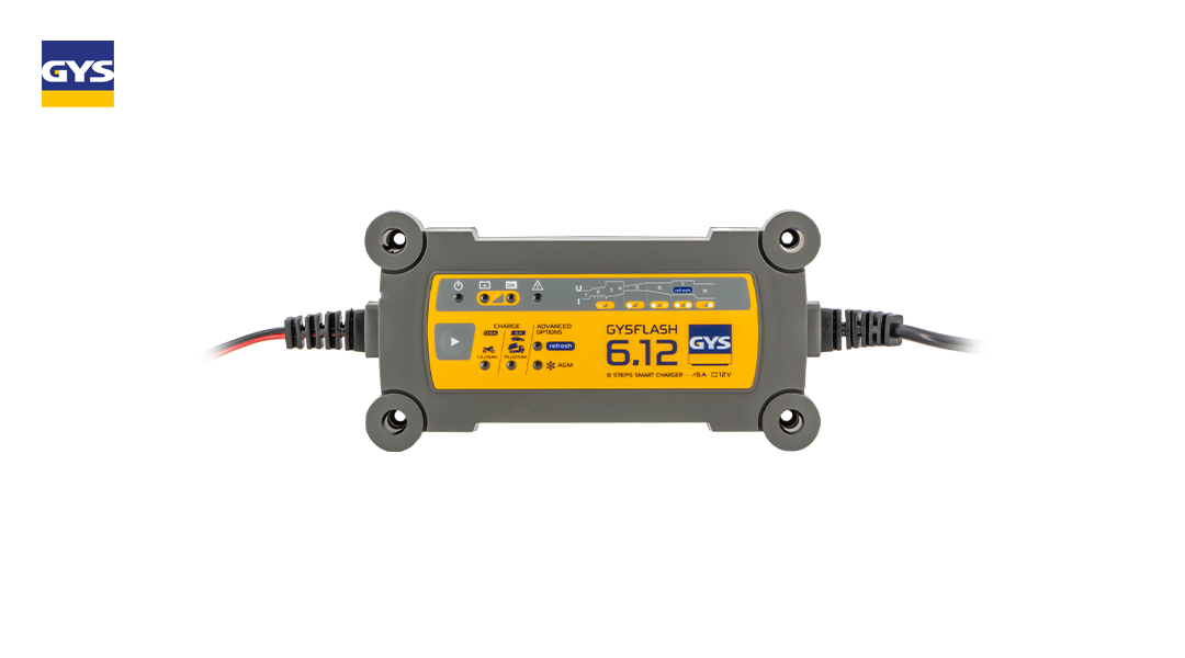 The GYSFLASH 6.12 offers optimum recharging of 12 V motorbike, car and commercial vehicle batteries.